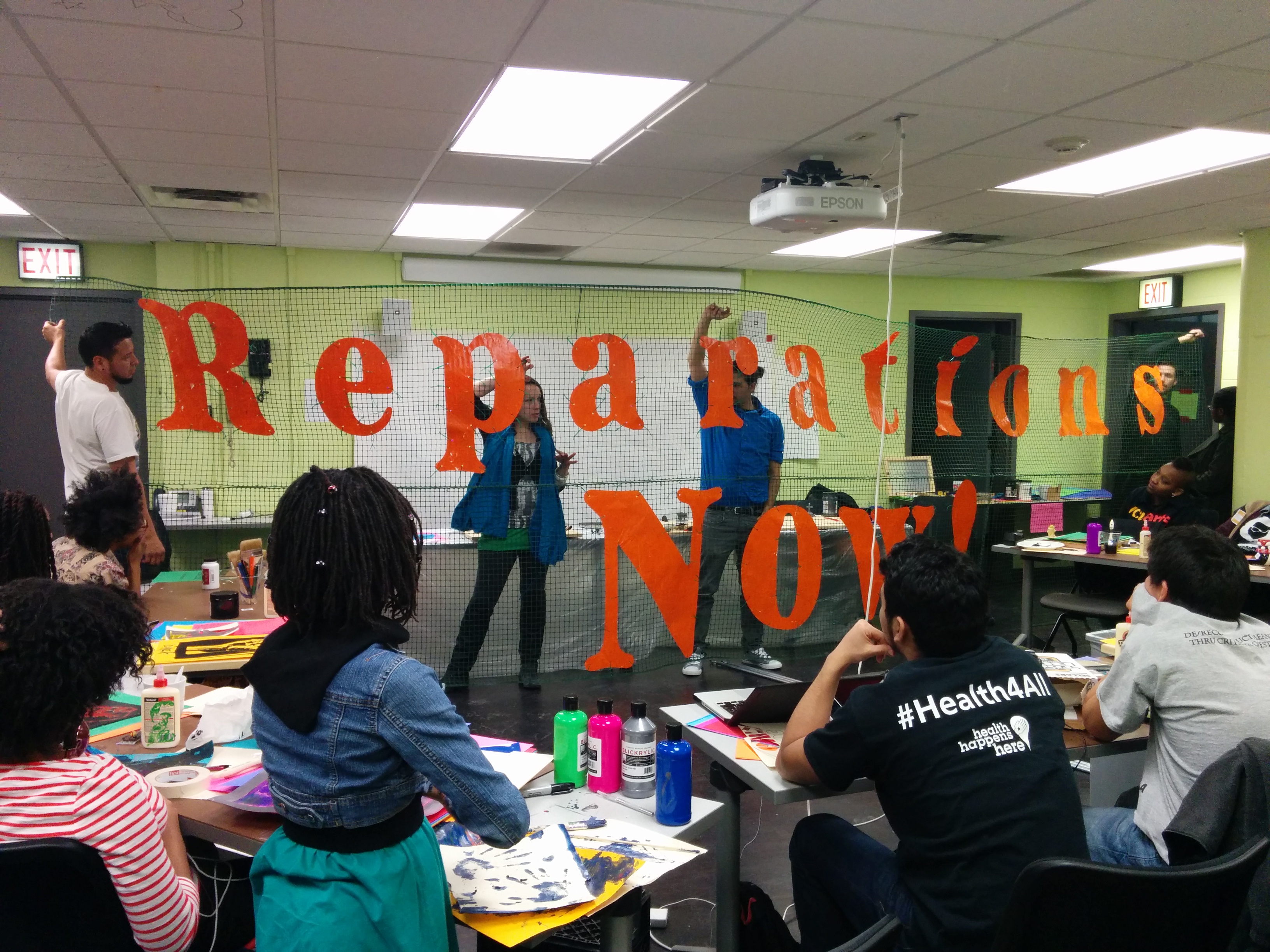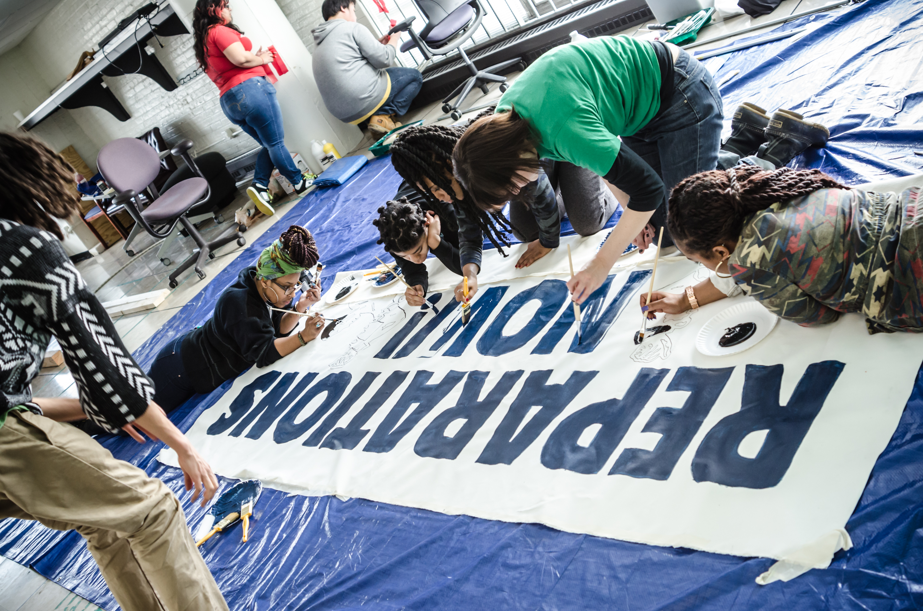 The two banners we created read, “Reparations Now!” and “Transformation Now!”